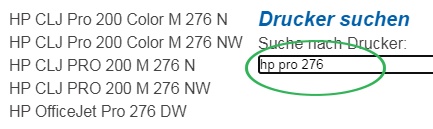Einfach die Druckerbezeichnung eingeben, in der linken Spalte werden die gefunden Drucker angezeigt | ![]() |