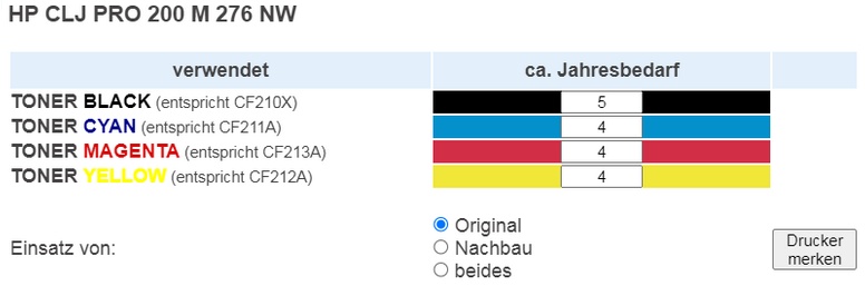 Anschließend den gewünschten Drucker auswählen und gegebenfalls den Bedarf eintragen.
